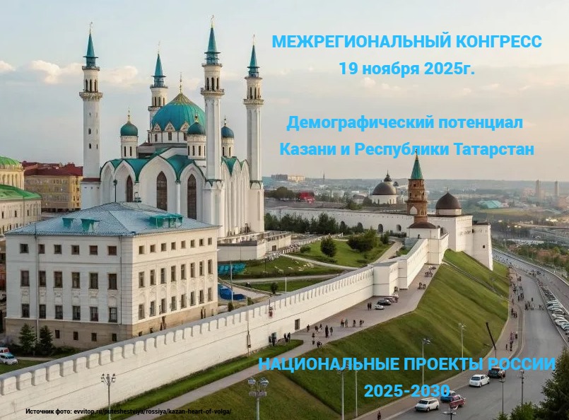 19 ноября 2025 в 10 часов в столице Республики Татарстан г.Казань открывается Межрегиональный конгресс «Демографический потенциал г.Казани и Республики Татарстан». Это первое мероприятие большого проекта Всероссийский конгресс «Демографический потенциал России», который пройдет в 2025-26 гг. более чем в 10 крупных городах России. Инициатор проекта – Союз российских городов. Эксклюзивный технический организатор – компания «Медицинское образование и развитие» (МОИР), г.Москва.